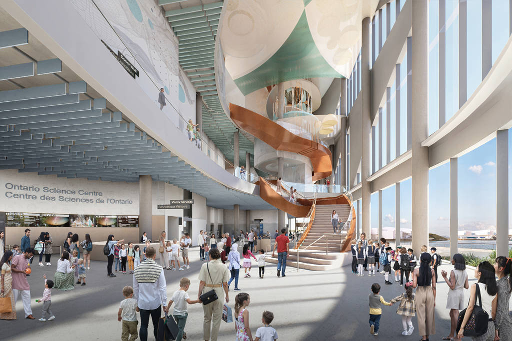 While the new facility is smaller in footprint than the original Don Mills location, the province says the space is designed for maximum efficiency. This includes 120,000 square feet of dedicated exhibit space and hands-on workshops, sun-drenched galleries with floor-to-ceiling windows offering views of Lake Ontario, as well as fully accessible design, aiming for the Rick Hansen Foundation certification to ensure science is for everyone.
