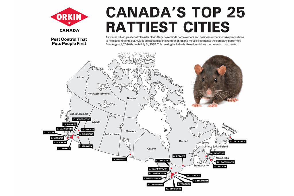 Selon Orkin, voici les 10 villes les plus infestées de rats au Canada en 2025: