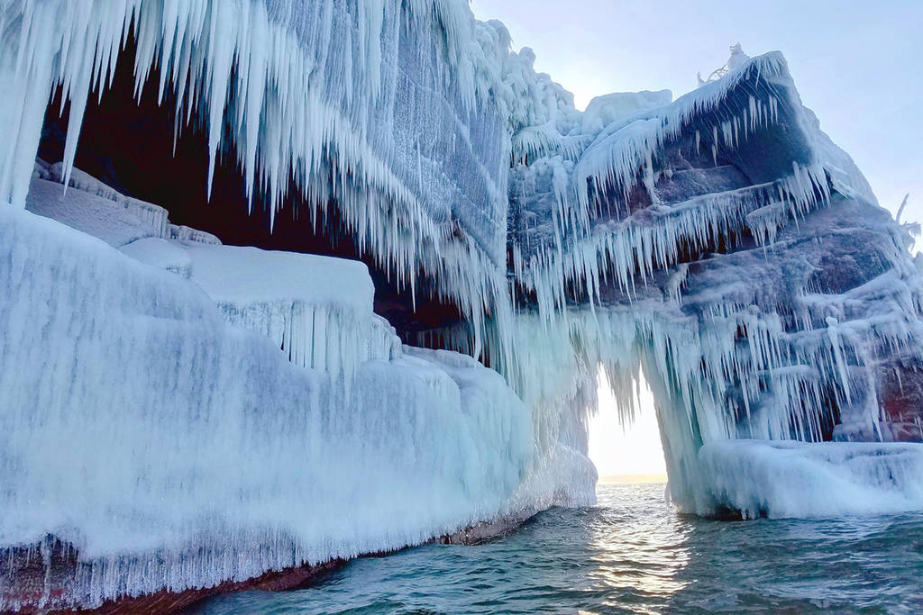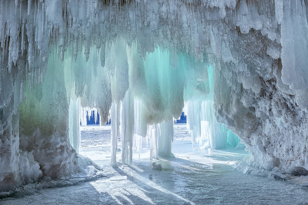 The caves are born from a perfect storm of intense cold winds and crashing waves off the lake. When the conditions hit just right, the shoreline is encased in layers of thick, crystal-clear ice, creating hollowed-out chambers and towering frozen pillars.