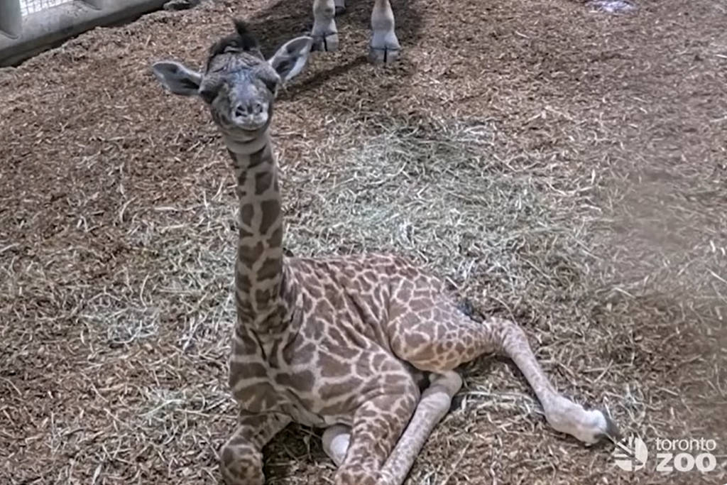 The Toronto Zoo posted a video of the birth on their website, which you can watch here. In the wild, giraffe calves have to find their footing fast, and this newcomer is already a natural. Born at 1:26 a.m., the leggy calf was remarkably standing on her own four feet by 2 a.m., less than 40 minutes after entering the world.